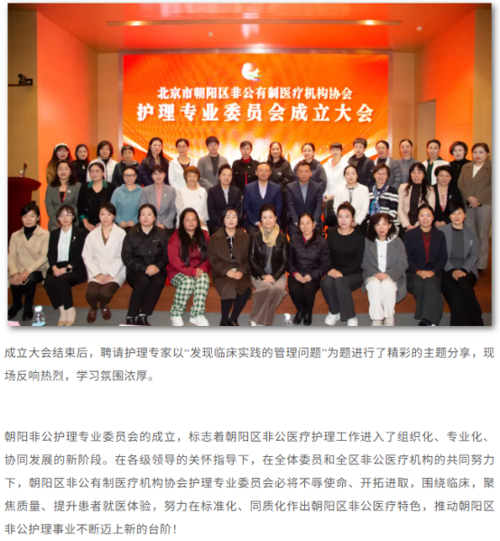朝阳非公有制医疗机构协会护理专业委员会成立大会召开