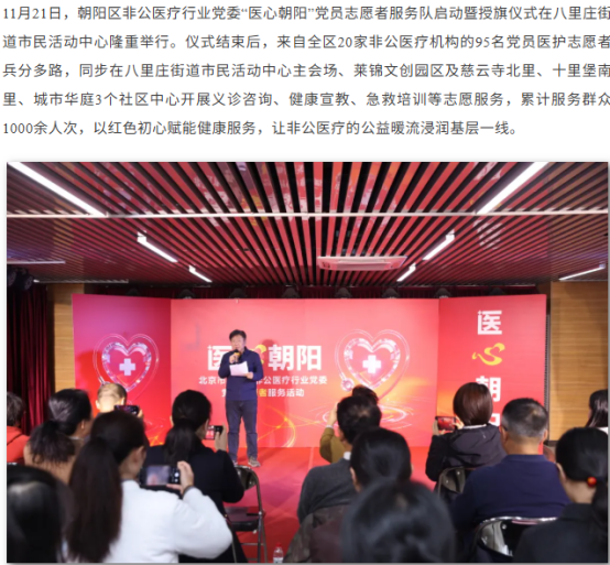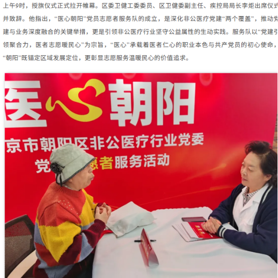 医心朝阳践使命 志愿服务暖民心——“医心朝阳”党员志愿者服务队启动暨义诊活动圆满举行
